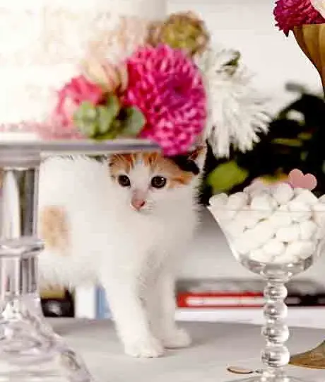 A small tabby kitten, with orange-and-white fur that gleamed in the sunlight, peeked out from the layers of tulle. Its tiny face, complete with wide green eyes and a cautious expression, seemed to acknowledge the astonished crowd with a timid meow.