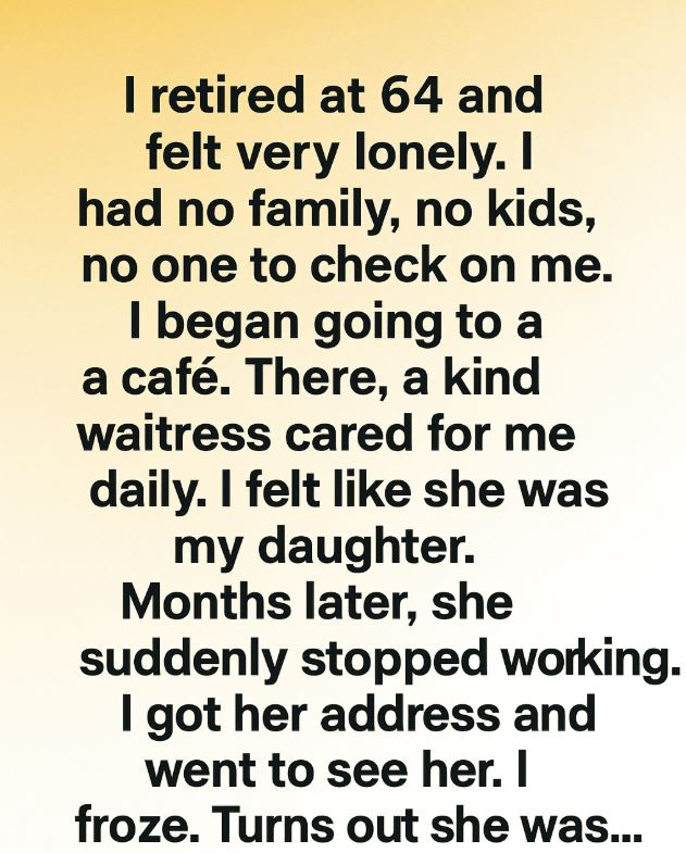 Retirement was supposed to feel like freedom, but for me it arrived as an unexpected silence. At 64, with no close family and no one checking in, my days felt long and empty. On a whim, I began visiting a small neighborhood café, more for the routine than the coffee. Over time, a kind waitress learned my order, asked how I was doing, and greeted me with a warmth that slowly became the highlight of my day.